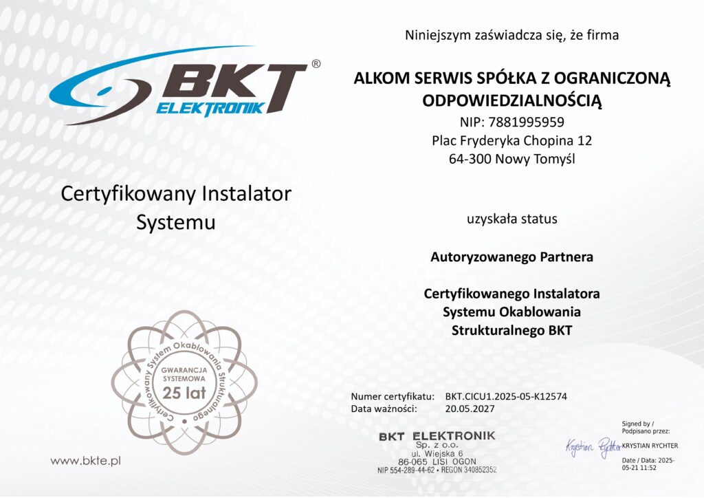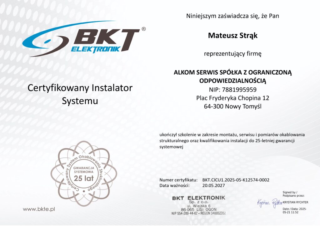 Nasze kompetencje potwierdzają poniższe certyfikaty.